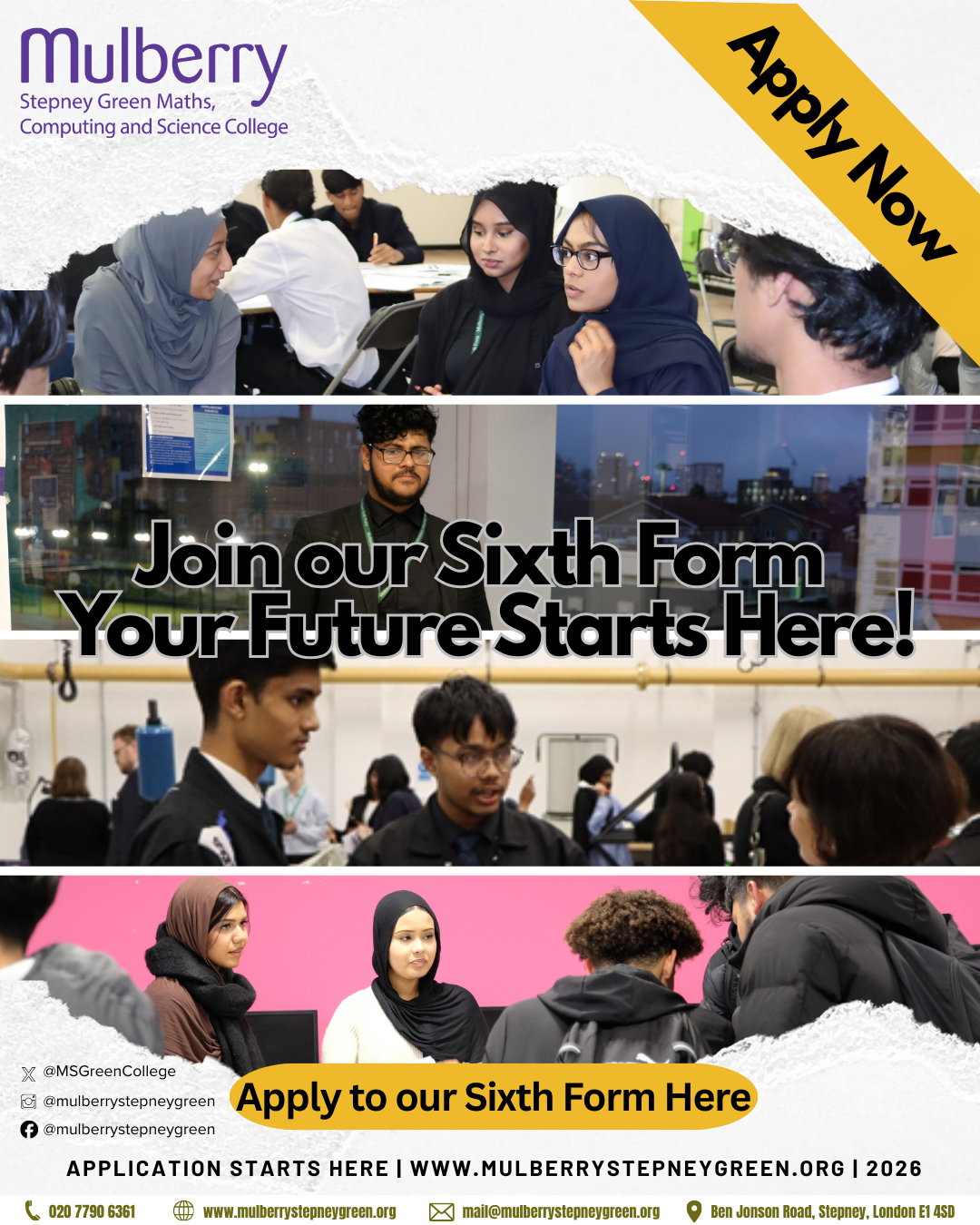 Mulberry Stepney Green Maths, Computing and Science College is part of the Mulberry Schools Trust which is a charitable company limited by guarantee registered in England and Wales (Company No. 10035860).